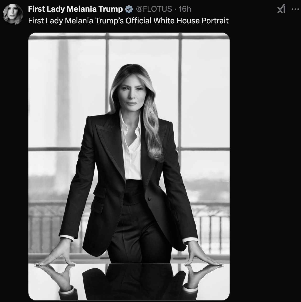 Also commenting on the portrait was Evie Magazine’s founder Brittany Hugoboom, who posted the official portrait on X, and, captioning it, wrote, “The most beautiful First Lady I’ve ever seen. Melania Trump’s official 2025 portrait is absolutely stunning.” Agreeing, a commenter said, “i love it a lot. i think it captures a side of melania that WE never really knew. she’s very smart!”